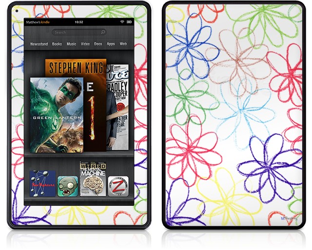 Amazon Kindle Fire (Original) Decal Style Skin - Kearas Flowers on White