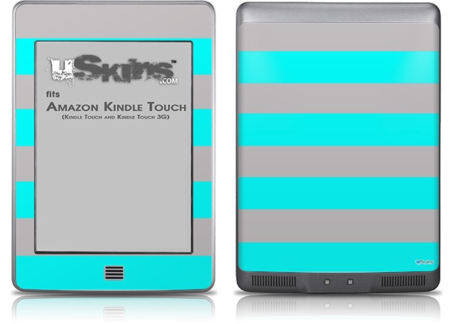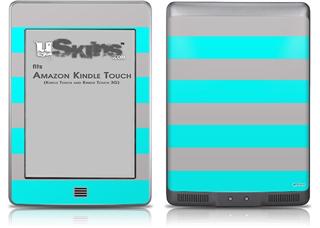 Psycho Stripes Neon Teal and Gray - Decal Style Skin (fits Amazon Kindle Touch Skin)