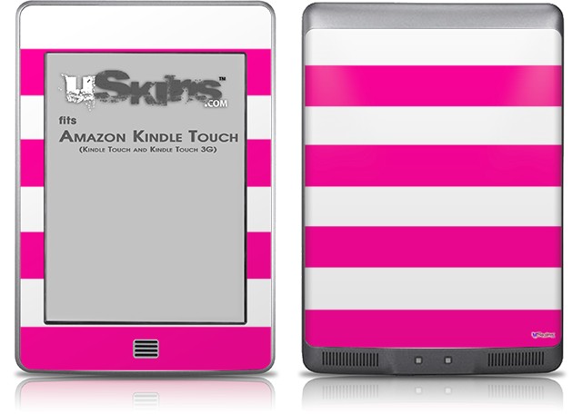 Psycho Stripes Hot Pink and White - Decal Style Skin (fits Amazon Kindle Touch Skin)