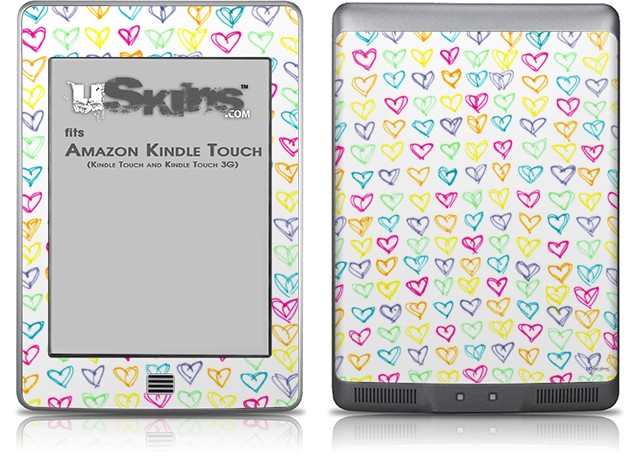 Kearas Hearts White - Decal Style Skin (fits Amazon Kindle Touch Skin)
