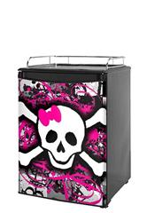 Kegerator Skin - Splatter Girly Skull (fits medium sized dorm fridge and kegerators)