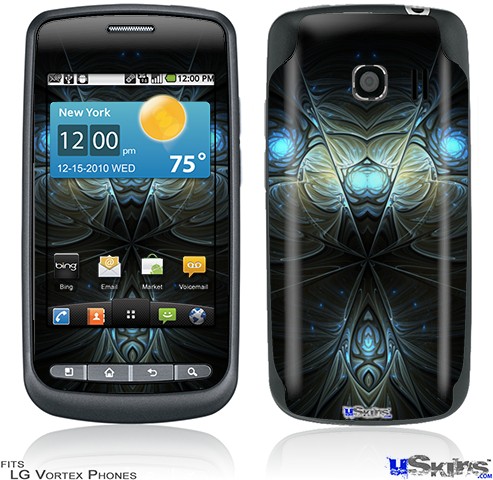 • Skin covers front and back of LG Vortex cell phone.