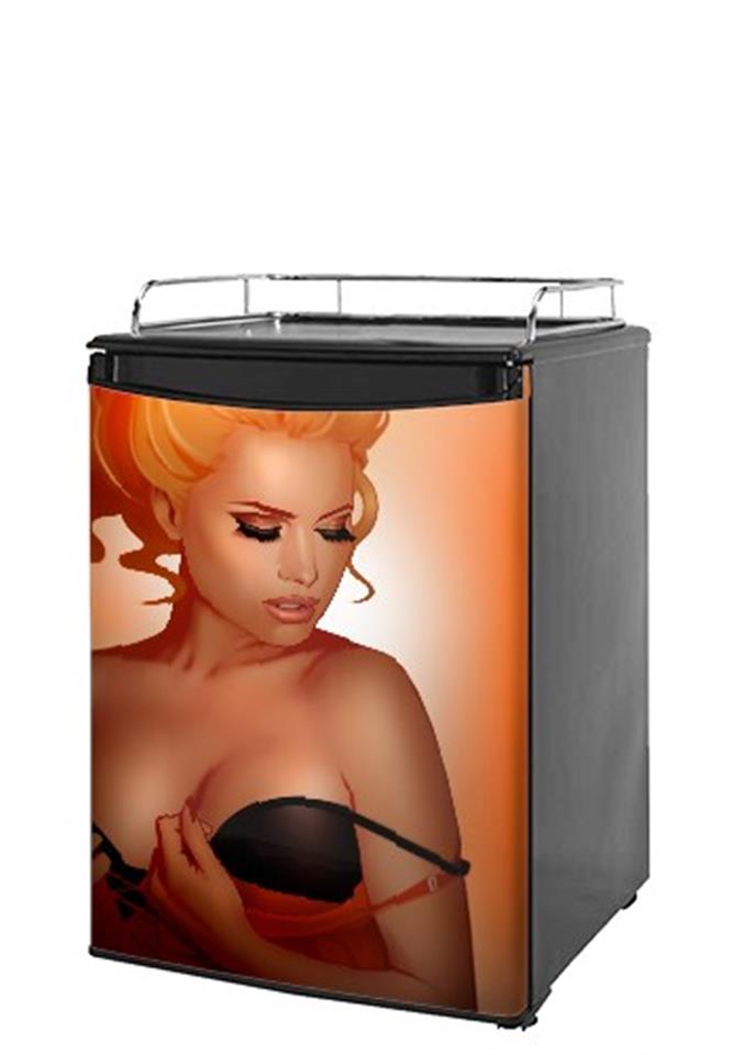 Kegerator Skin - 0range Pin Up Girl (fits medium sized dorm fridge and kegerators)