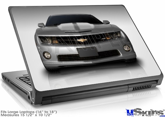 Laptop Skin (Large) - 2010 Chevy Camaro Silver - White Stripes