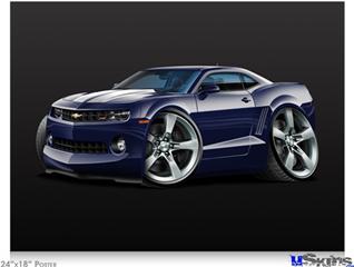 Poster 24"x18" - 2010 Camaro RS Blue Dark on Black