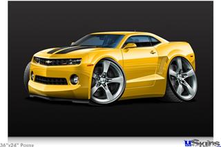 Poster 36"x24" - 2010 Camaro RS Yellow on Black