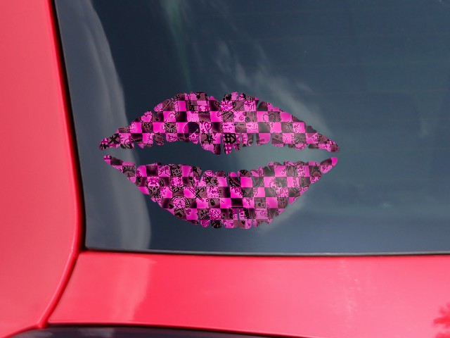 Lips Decal 9x5.5 Pink Checkerboard Sketches