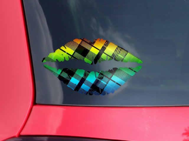 Lips Decal 9x5.5 Rainbow Plaid