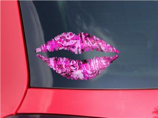 Lips Decal 9x5.5 Pink Plaid Graffiti