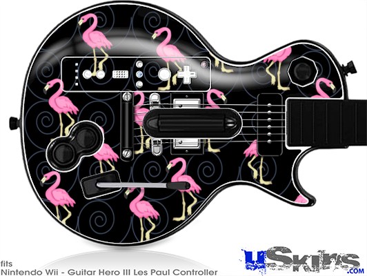 Guitar Hero III Wii Les Paul Skin - Flamingos on Black