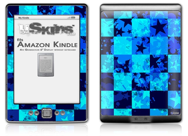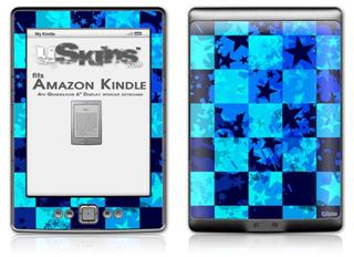 Blue Star Checkers - Decal Style Skin (fits 4th Gen Kindle with 6inch display and no keyboard)