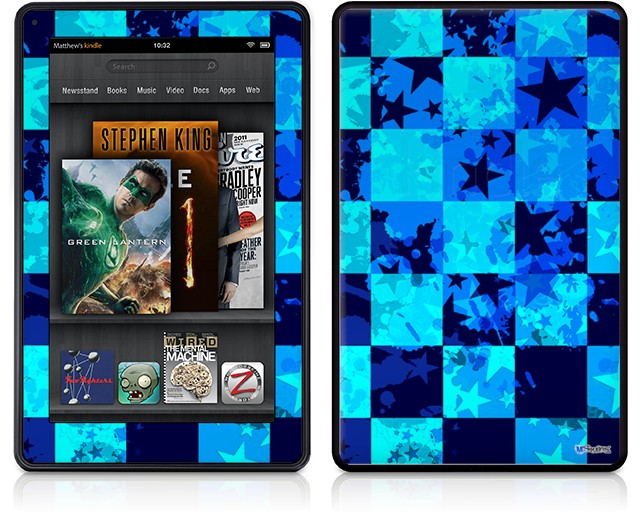 Amazon Kindle Fire (Original) Decal Style Skin - Blue Star Checkers
