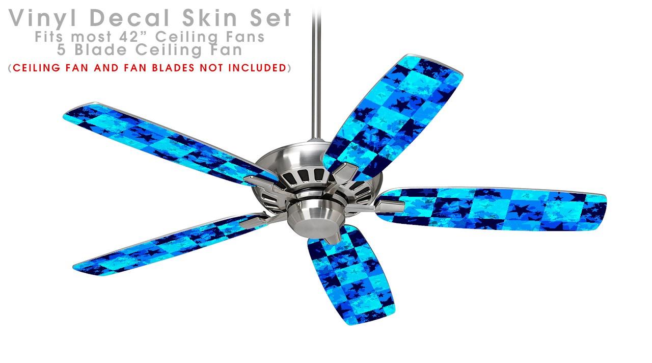 Blue Star Checkers - Ceiling Fan Skin Kit fits most 42 inch fans (FAN and BLADES SOLD SEPARATELY)