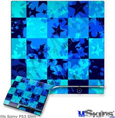 Decal Skin compatible with Sony PS3 Slim Blue Star Checkers