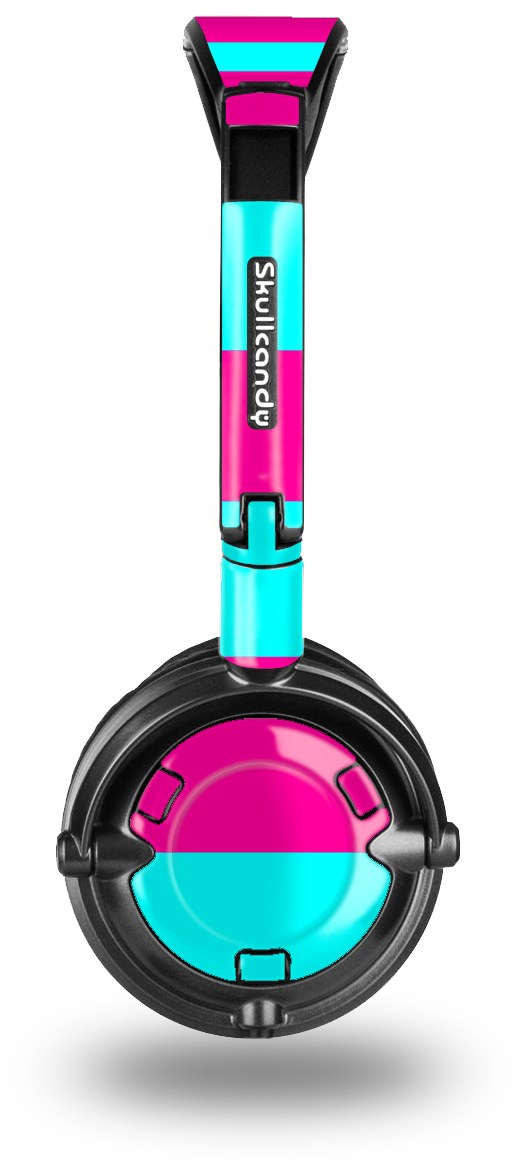 Psycho Stripes Neon Teal and Hot Pink Decal Style Skin fits Skullcandy Lowrider Headphones (HEADPHONES SOLD SEPARATELY)