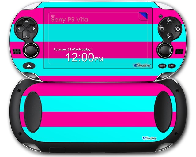 Psycho Stripes Neon Teal and Hot Pink - Decal Style Skin fits Sony PS Vita