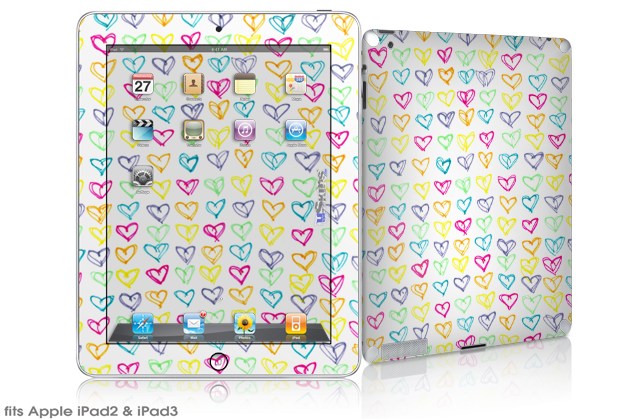 iPad Skin - Kearas Hearts White (fits iPad2 and iPad3)