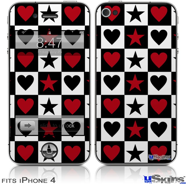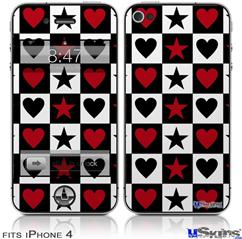 iPhone 4 Decal Style Vinyl Skin - Hearts and Stars Red (DOES NOT fit newer iPhone 4S)