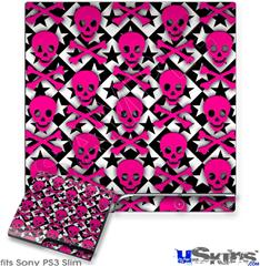 Decal Skin compatible with Sony PS3 Slim Pink Skulls and Stars