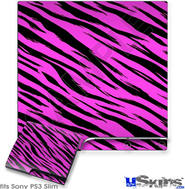 Decal Skin compatible with Sony PS3 Slim Pink Tiger