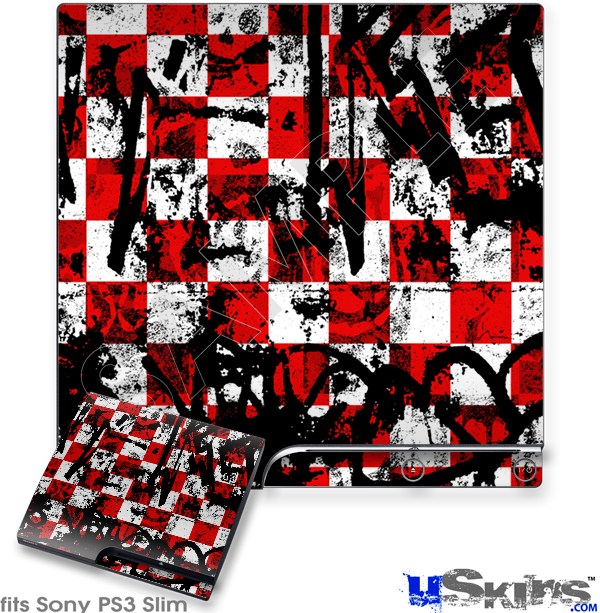 Decal Skin compatible with Sony PS3 Slim Checker Graffiti