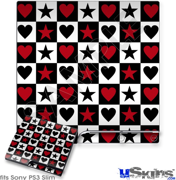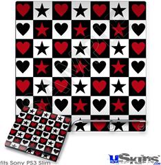 Decal Skin compatible with Sony PS3 Slim Hearts and Stars Red