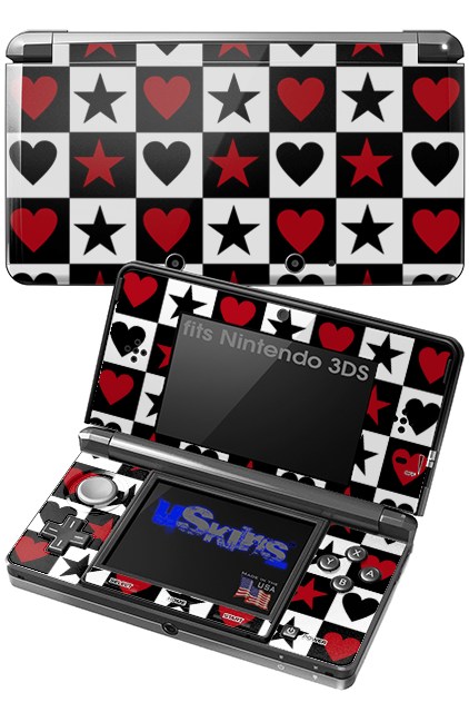 Hearts and Stars Red - Decal Style Skin fits Nintendo 3DS (3DS SOLD SEPARATELY)