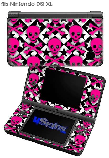 Pink Skulls and Stars - Decal Style Skin fits Nintendo DSi XL (DSi SOLD SEPARATELY)