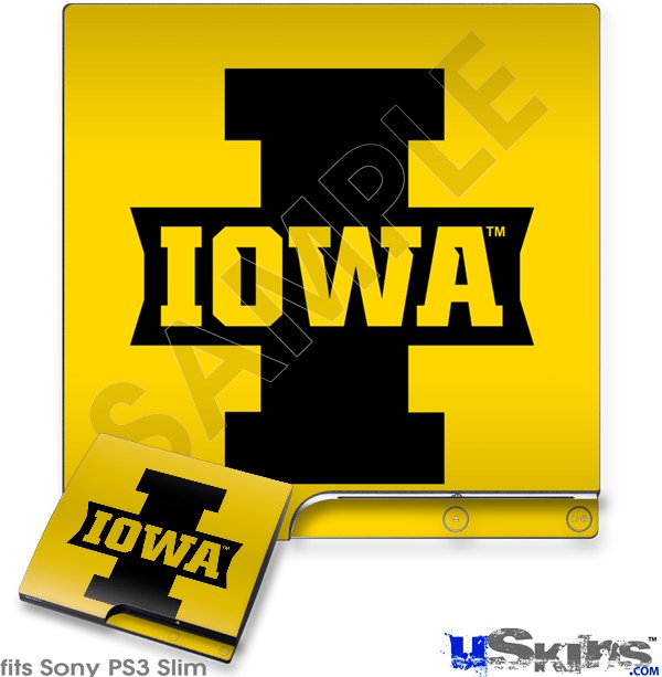 Decal Skin compatible with Sony PS3 Slim Iowa Hawkeyes 04 Black on Gold