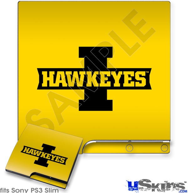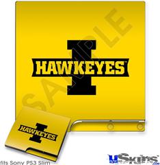 Decal Skin compatible with Sony PS3 Slim Iowa Hawkeyes 02 Black on Gold