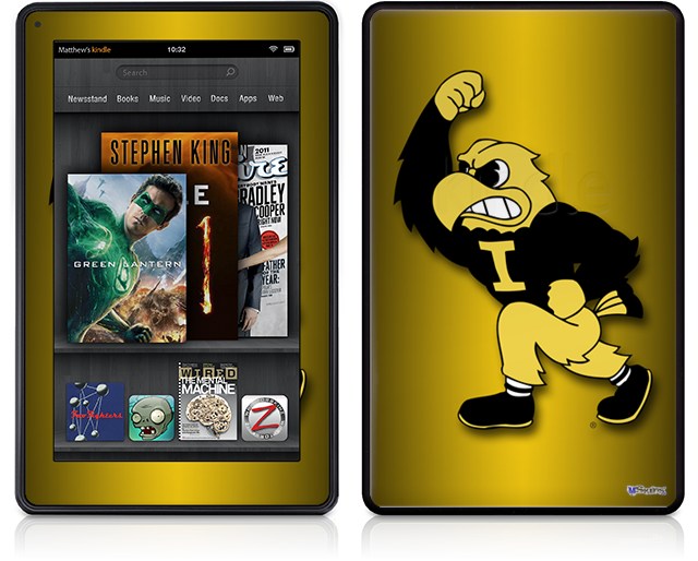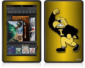 Amazon Kindle Fire (Original) Decal Style Skin - Iowa Hawkeyes Herky on Black and Gold
