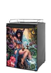 Installation Instructions: Required Tools: Sharp Utility Knife. Our refrigerator skins are made so that one size fits most medium size dorm and keg fridges. This means the skins are slightly larger then most medium size dorm and keg fridges and will require trimming to fit. This refrigerator skin wrap measures 28 3/4in x 41in. Please measure your fridge door to make sure this skin will cover not only the face of the door but wrap around the sides as well. uSkinsTM self adhering vinyl skins wrap. Our skins are a composite of layered commercial grade vinyls. The bottom layer is a soft, flexible vinyl with a special removable adhesive that is easily positioned, applied without air bubbles, and effortlessly removed without leaving a sticky residue. uSkins are printed with the latest in UV protected inks that resist fading for up to 3 years even in direct sunlight. Finally we bond a professional grade laminate over the entire skin adding a professional glossy protective finish.