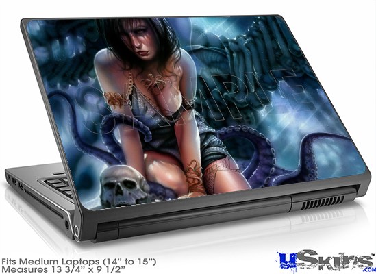 Laptop Skin fits most medium size laptops with 14" to 15" screens. Skin measures 13 3/4" wide x 9 1/2" high. uSkinsTM self adhering vinyl skins will look amazing on your electronic gear, printed at the highest resolution possible for unbeatable color and razor sharp clarity. Unlike bulky silicon, plastic or metal cases and faceplates, uSkins are designed to be thin and very tough. uSkins are a composite of layered commercial grade vinyls. The bottom layer is a soft, flexible vinyl with a special removable adhesive that is easily positioned, applied without air bubbles, and effortlessly removed without leaving a sticky residue. uSkins are printed with the latest in UV protected inks that resist fading for up to 3 years even in direct sunlight. Finally we bond a professional grade laminate over the entire skin adding a professional glossy protective finish.