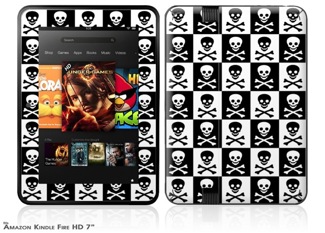 Skull Checkerboard Decal Style Skin fits 2012 Amazon Kindle Fire HD 7 inch