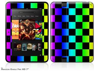 Rainbow Checkerboard Decal Style Skin fits 2012 Amazon Kindle Fire HD 7 inch