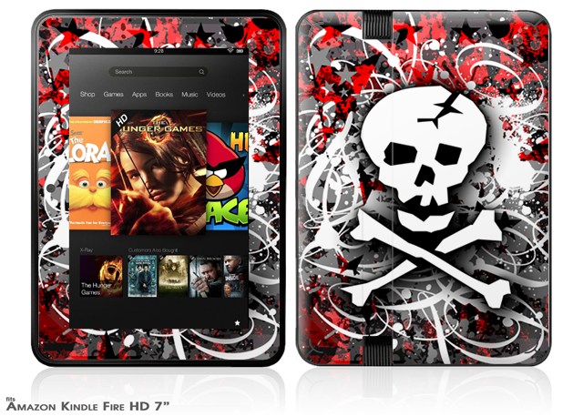 Skull Splatter Decal Style Skin fits 2012 Amazon Kindle Fire HD 7 inch