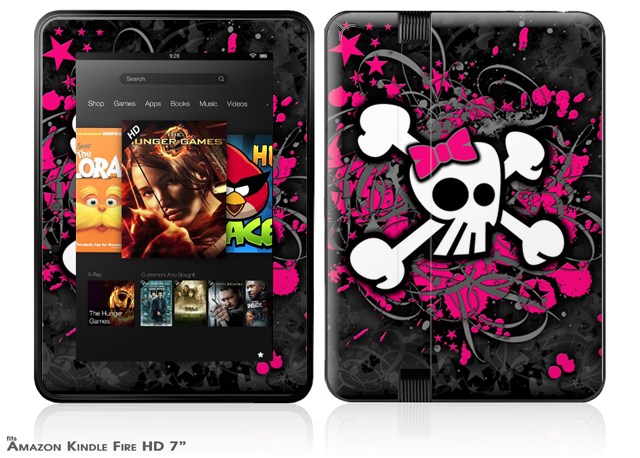 Girly Skull Bones Decal Style Skin fits 2012 Amazon Kindle Fire HD 7 inch