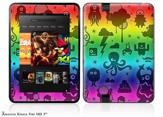 Cute Rainbow Monsters Decal Style Skin fits 2012 Amazon Kindle Fire HD 7 inch