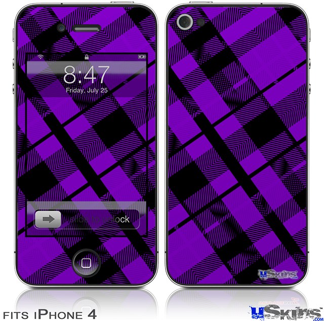 iPhone 4 Decal Style Vinyl Skin - Purple Plaid (DOES NOT fit newer iPhone 4S)
