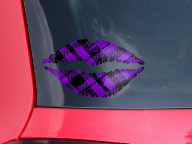 Lips Decal 9x5.5 Purple Plaid