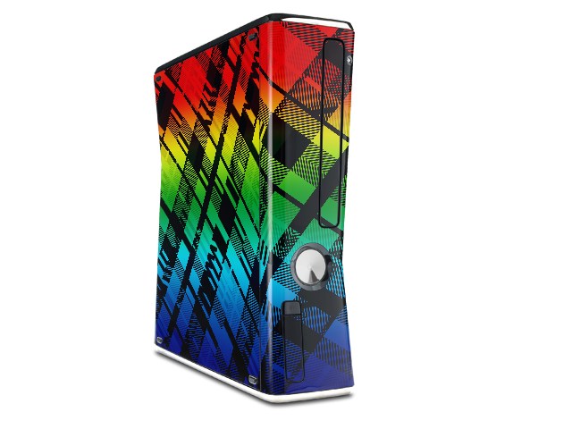 Rainbow Plaid Decal Style Skin for XBOX 360 Slim Vertical