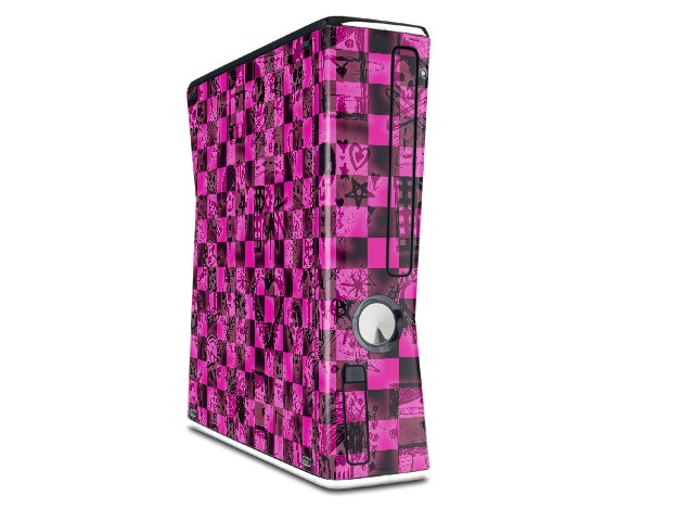 Pink Checkerboard Sketches Decal Style Skin for XBOX 360 Slim Vertical