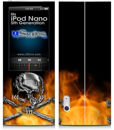 iPod Nano 5G Skin - Chrome Skull on Fire