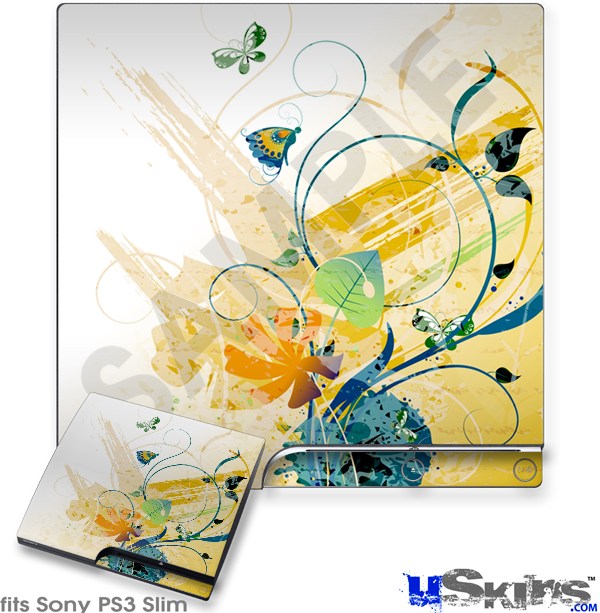 Decal Skin compatible with Sony PS3 Slim Water Butterflies