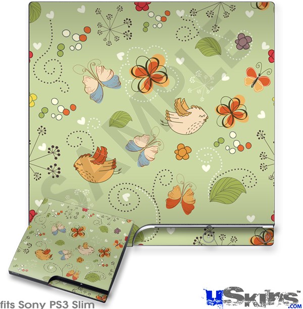 Decal Skin compatible with Sony PS3 Slim Birds Butterflies and Flowers