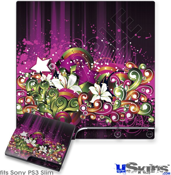 Decal Skin compatible with Sony PS3 Slim Grungy Flower Bouquet
