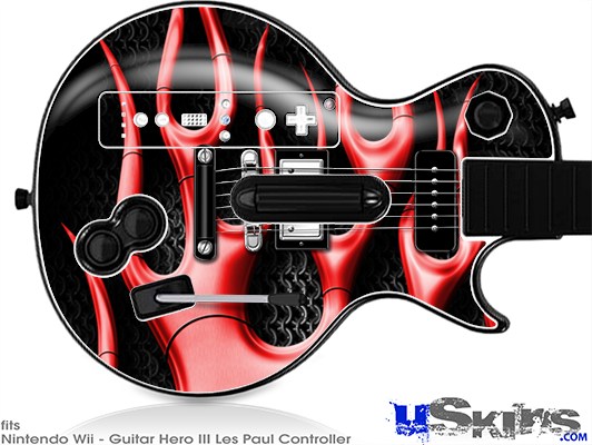 Guitar Hero III Wii Les Paul Skin - Metal Flames Red
