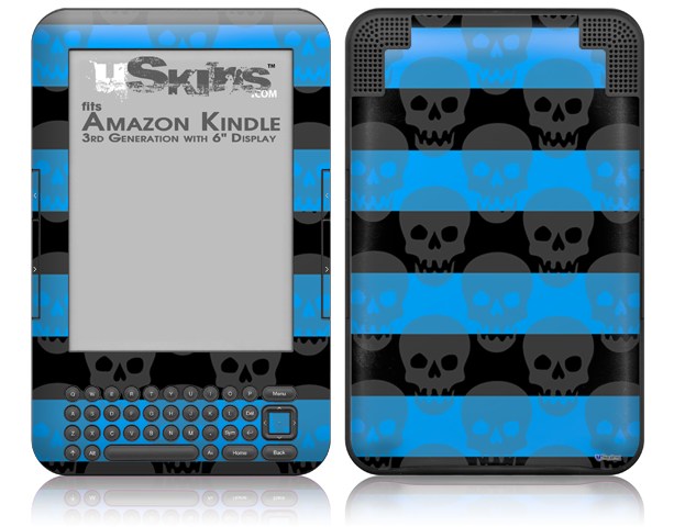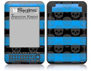 Skull Stripes Blue - Decal Style Skin fits Amazon Kindle 3 Keyboard (with 6 inch display)