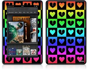 Amazon Kindle Fire (Original) Decal Style Skin - Love Heart Checkers Rainbow