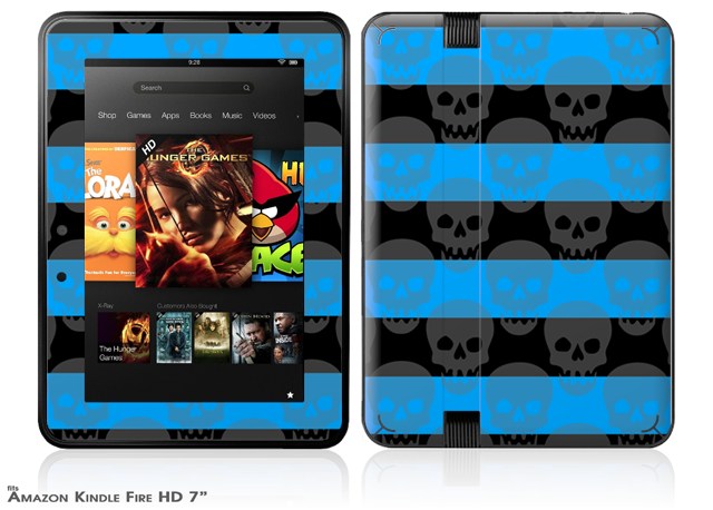 Skull Stripes Blue Decal Style Skin fits 2012 Amazon Kindle Fire HD 7 inch
